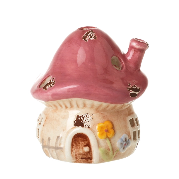Small Pink Ceramic Mushroom House Ornament