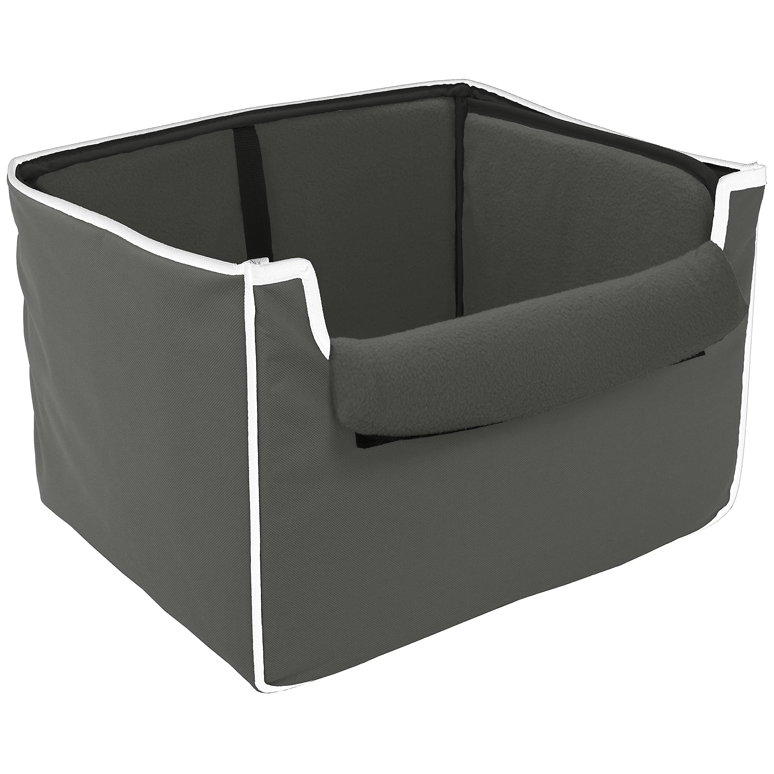 Precious Tails Collapsible Pet Booster Car Seat Box with Plush Fleece Cover, Cushion Insert and Foam Padded Panel – Foldable Carseat for Small Pet Dogs and Puppies Under 20 lbs, Grey